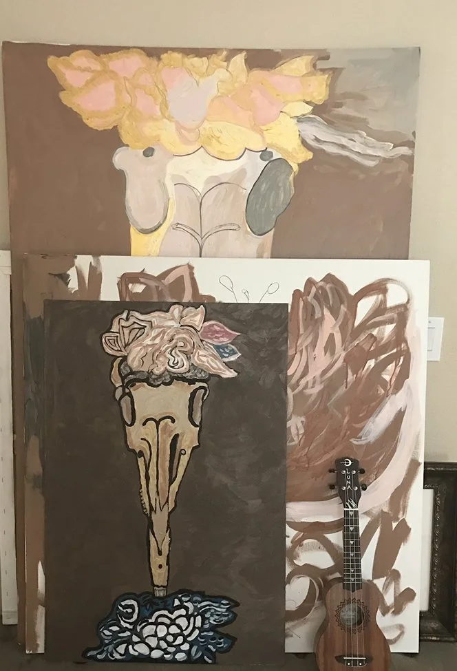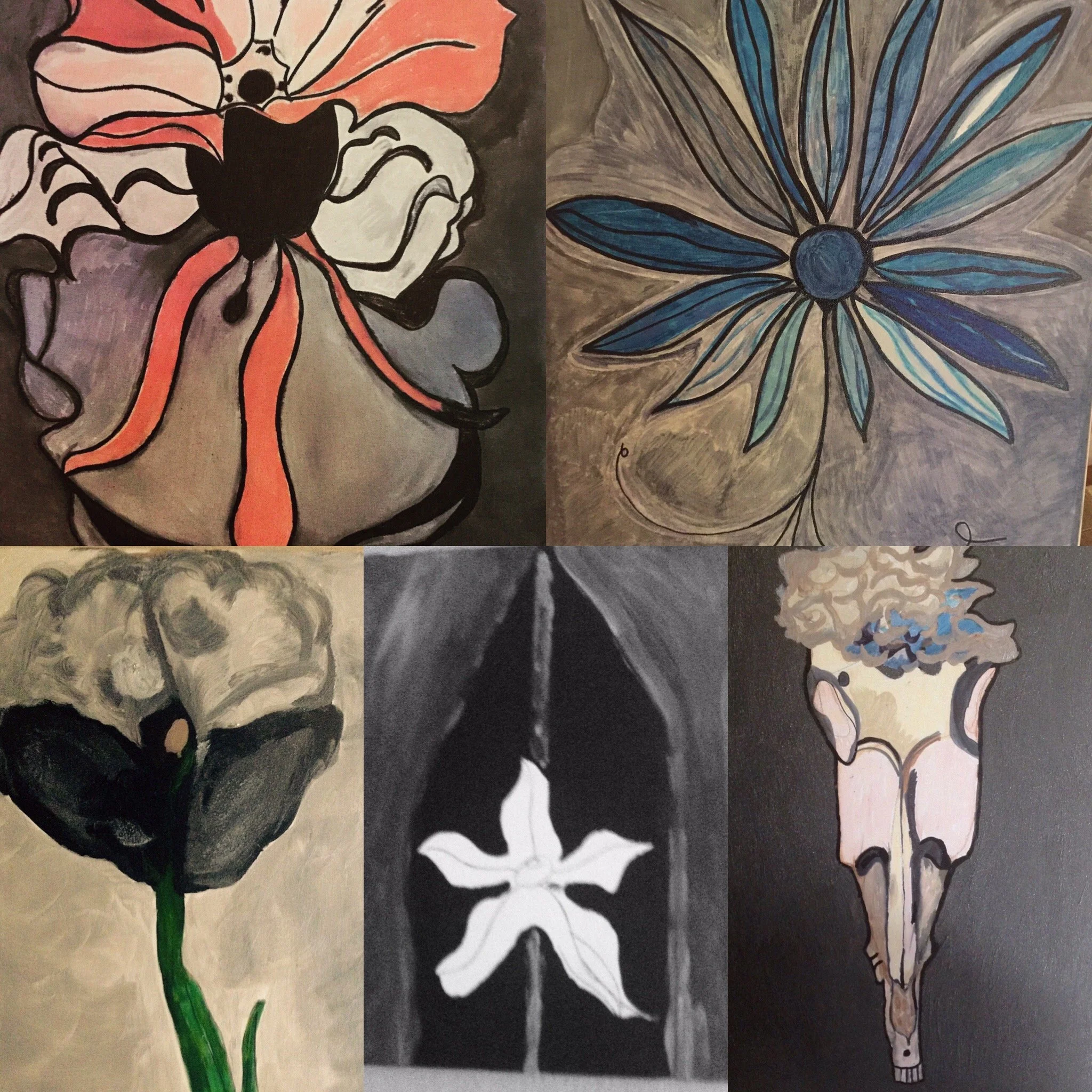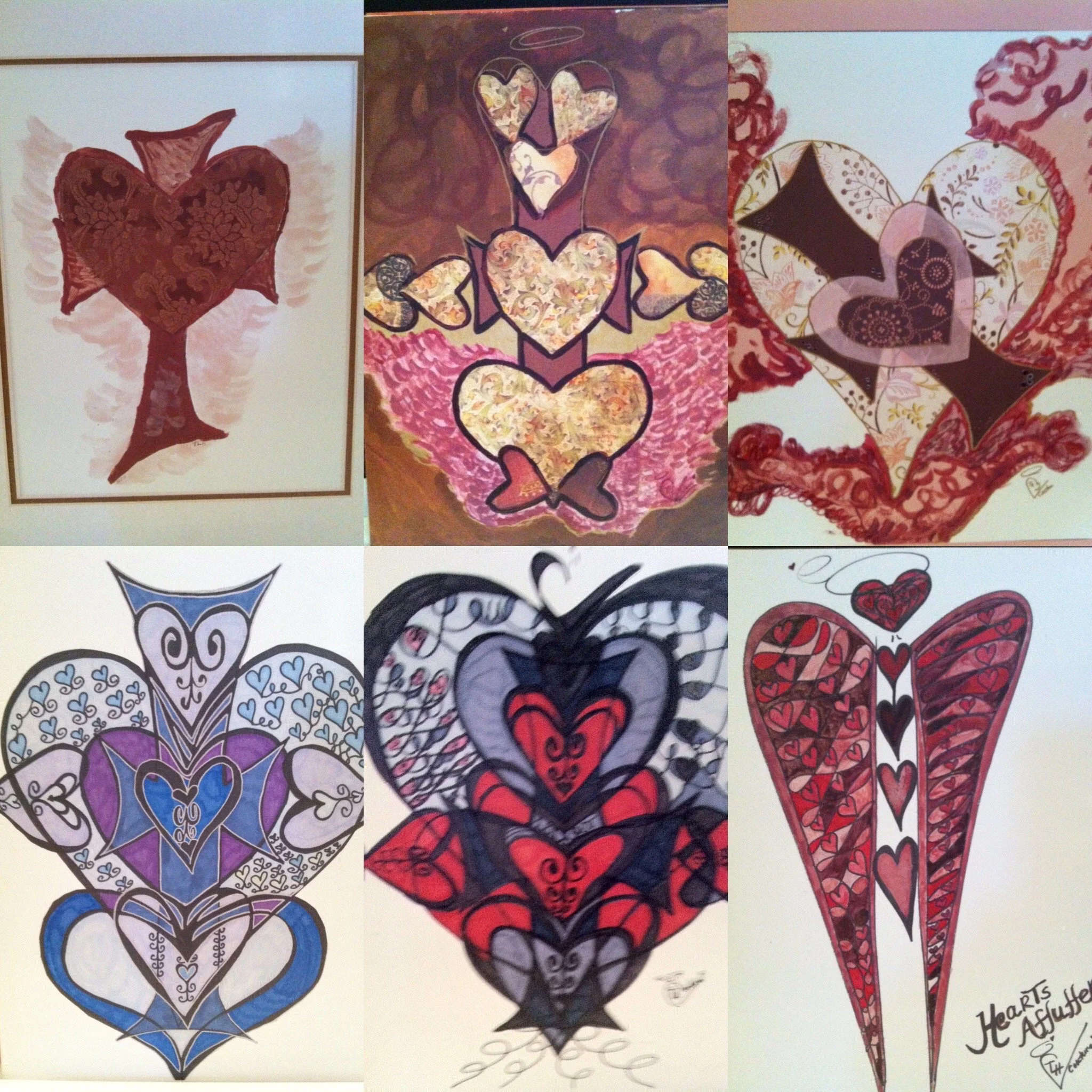 Diverse Mixed Media Pieces inspired by My Doodling Of Hearts and Crosses and Love of FLOWERS!